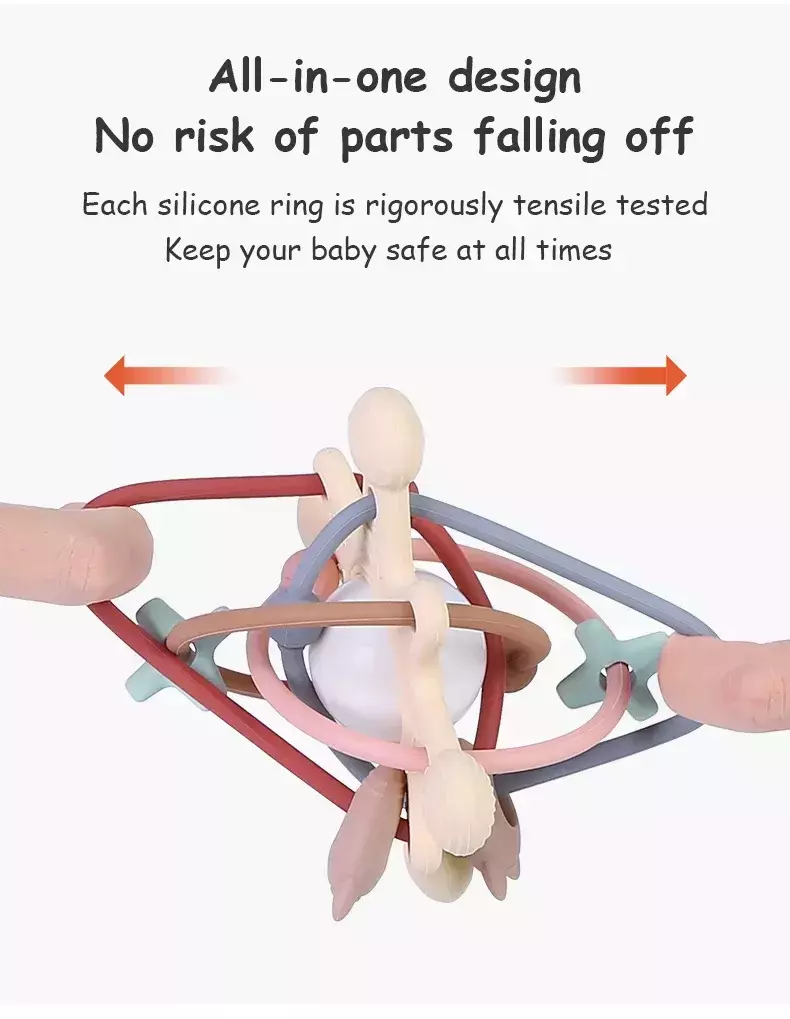 👶✨ Mordedor de Silicone Montessori para Bebê - Chocalho Sensorial: alívio, aprendizado e diversão em um só produto!